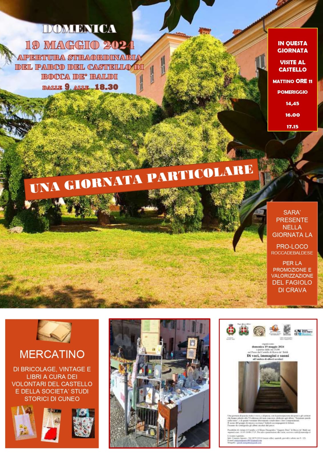 Una giornata intensa ed interessante tra la bellezza del parco, le stanze e il museo etnografico del Castello di Rocca de’ Baldi.Dalle ore 9,00 alle ore 18,30 infatti nel parco i volontari del Castello propongono un mercatino con oggettistica vintage e gadget; la Società per gli Studi storici della provincia di Cuneo offre a unContinua a leggere “Domenica 19 Maggio: una giornata particolare”